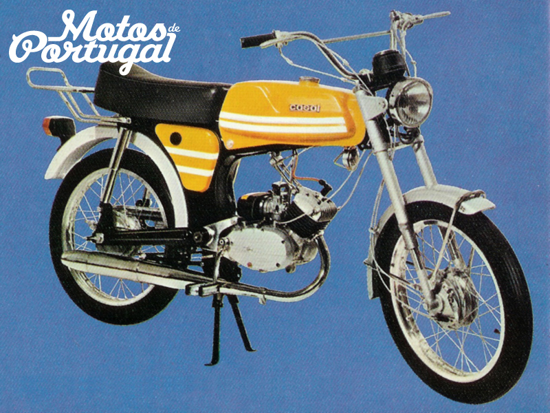 Rugged and ruthless,this machine is built to move. Aggresively styled, superbly built. Open the throttle and release the pent-up power of an engine that's rarin' to go. And like all Casal bikes, it's designed to give you much more mileage for your money. Finished in sunrise yellow and silver. Chrome-plated competition-type mudguard stays.