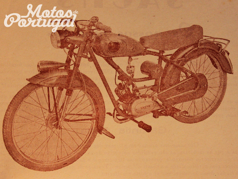 Máquina resistente, segura, bonita e rápida. Com motor de 3 velocidades, atingindo 65/70 Kms. horários. Rodas 25x2. Forqueta telescópica. Munida de pousa-pés, travão de pé e com pedais com duas posições de conforto, quer para homens muito altos ou menos altos. Selim tipo SOFà em borracha sobre chassis seguro e muito elegante. Guiador largo Sport com movimentos. Instalação de luz, claxon e farolim "Torpedo" no guarda-lamas da frente. Suporte de bagagem especial SPORT cromado. Carter de corrente fechado lateramente. Entrega-se em vermelho, verde ou em preto. Não se faz apologia desta máquina, visto que ela já provou bem o que é na sua qualidade, beleza e perfeição. Preço: 6.660$00 Melhor modelo